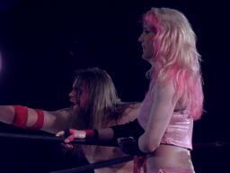 大原が突き飛ばす、ジェシカは振り返りTAJIRIにキス(左写真)。しかしジェシカの様子がおかしい。