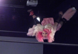 側転エルボー(右写真)から619、ジェシカがカット。リンはTAJIRIにタッチ。
