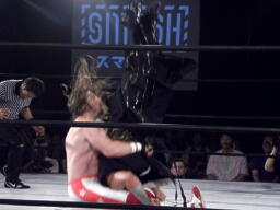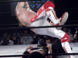 大原のタックルはスターバック潰す(右写真)。スターバックパンチ、大原逃げる。
