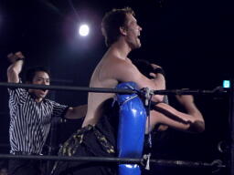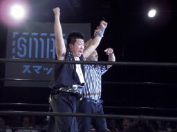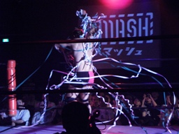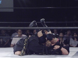 カナディアンバックブリーカーから投げ落とすとムイ・ビエンに(右写真)。