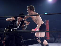 首を押さえる大原(右写真)。短時間勝負だったが大原の首を巡る攻防に焦点が絞られていて非常にいい試合。
