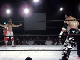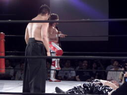 大原が入ってTAJIRIを助け起こす(右写真)。