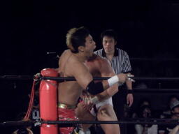 SMASH.4でKUSHIDAと対戦した旧友・木イサミが見つめる中(右写真)試合がスタート。