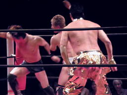 そしてイトウがドラゴンスプラッシュ(左写真)、カウント3。