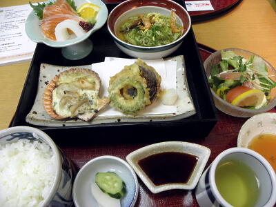 11時30分なので昼飯。しかし駅ビルには大した店がない。駅前の大通りを渡った先の高知ホテル内のレストランで「加尾御膳」。鰹は入ってないが名産品揃いらしい。