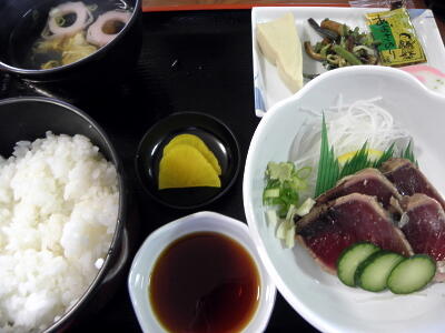 バスで桂浜に移動、昨日のとは違い下世話な鰹たたき定食。「たたき亭」は昼はやってないので仕方ない。