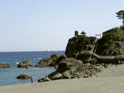 駅前の「であい博」会場で「ケータイ国盗り合戦」の幟を見つける。ああ、これやってるんだった。ということでまず1ポイントGET。駅の改札でもう1ポイント。後は安芸と桂浜。安芸はもともと行く予定にしていたから都合がいい。13時19分高知発のごめん・なはり線快速タイガース列車で安芸へ。14時16分着。