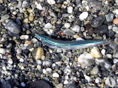 波で打ち上げられた?キビナゴ。写真を撮った後海に返してあげました。恩返ししてくれるといいなあ。