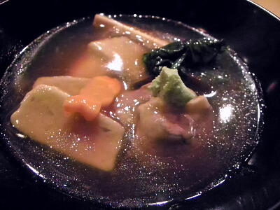 ご飯、先付け、ハマグリの味噌汁。