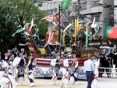 かと思ったら御朱印船は湊公園を出て行ってしまった。どこでやるんだろう?せっかく湊公園はくんち用に石畳張りになっているのに(昔はそうじゃなかった)。