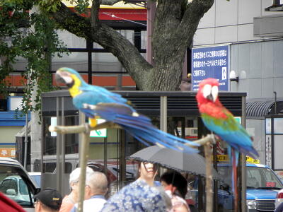 行列に参加するオウム。