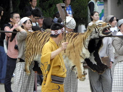 虎の皮の敷物。