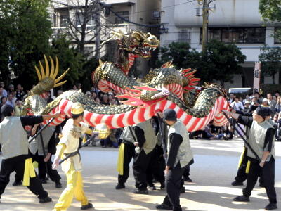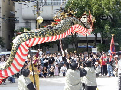 躍動感溢れる本籠町の龍踊。