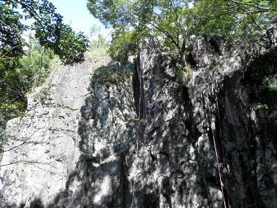 そのまま山道を登れば風頭山、ということで登るがえらいつらかった。ちょっとした山城だよこりゃ。もう長崎には住めないなあ。で、「風頭」の名の由来になった頂上の奇岩はフリークライミングの場になっていた。
