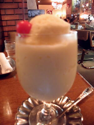 「ウミノ」でミルクセーキ。ストローで飲むのではなくスプーンで食べる。