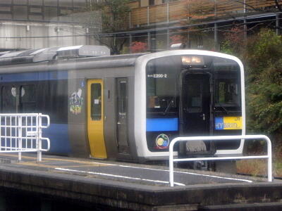 自分が乗ったのは旧来の電車だったが、途中でハイブリッド車とすれ違う。