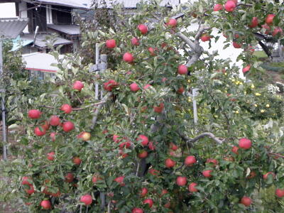 普通の民家の庭先にりんご。