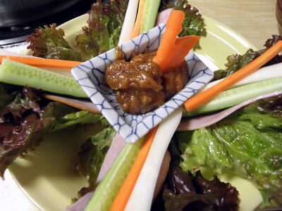 野菜スティックに力士味噌を付けて食う馬力サラダ。