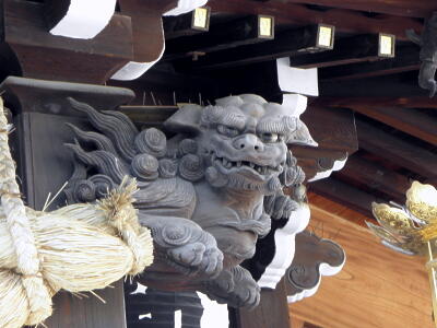 狛犬の彫刻。こっちが阿?