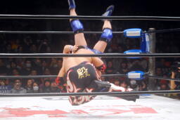 TAKAみちのくドライバー狙う、貴ブロックしてD-ガイスト(右写真)、ここでタイムアップ。引き分けの場合はジャンケン勝負に。