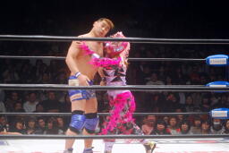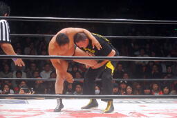 TAKAボディスラム狙うがボリショイはスイングDDTに切り返す(左写真)。