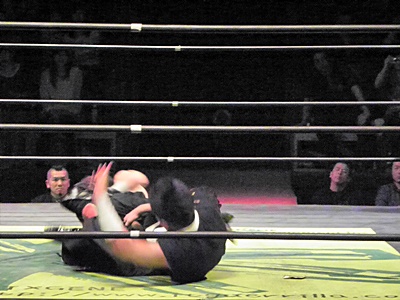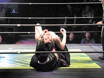 TAJIRI片逆エビ(左写真)からSTF、リリースしてストンピング。