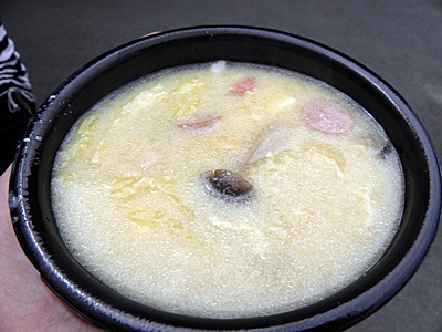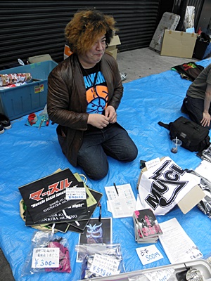 休憩終わり近くになってミツボシの洋風ちゃんこが完成(左写真)、熱いのでゆっくり食べてたら試合再開ということで扉が閉められる。ちゃんこは食い終ったものの、試合途中で入るのもなんだなあ、と思って結局セミは見ずに客が少なくなって(ゼロではない)ゆるゆるなフリマ見物。試合を見なかったことに他意はない。