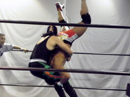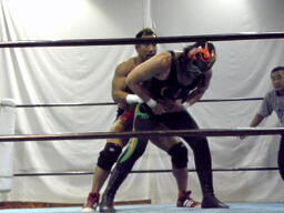 サムライラリアット(右写真)、2発目は諸橋かわしてバックの取り合いに。