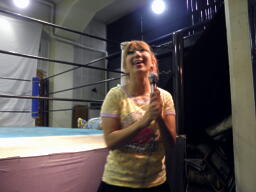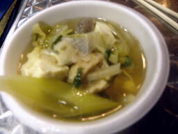 4時からのイベントはそのままSportiva Arenaに飲食用のテーブルを出して。ユニオン全選手と佐々木恭介は参加、あと会場にヒデ久保田はいたがロビン&ソフィア、円華、サムライは不参加。振舞われたちゃんこ(右写真)。人数多いから仕方ないが一人当たりが少ないよ!