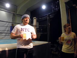 昨年の飯伏vs石川のKO-Dタイトルマッチを見た妻木はユニオンの団結力に感銘を受けてユニオンでのデビューを会社に申し出た、と。偉い!(右写真)