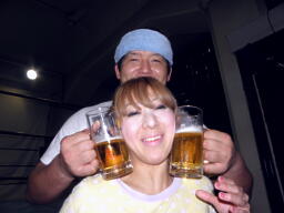 写真を撮ろうとしたらチェリーの顔にジョッキを押し付ける石川(左写真)。