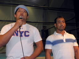 「いい話」を、と振られた妻木は自分がDDTではなくユニオン所属を選んだ理由を語る(左写真)。