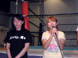 司会を振られたチェリーが話を引き出そうとするが協力しない高梨と諸橋の元KO-Dタッグ王者コンビ(左写真)。