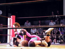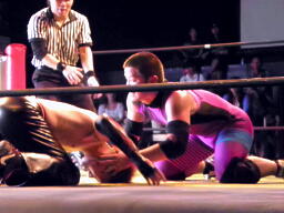 イサミバズソーキック、矢野ブロックしてみやここクラッチ in the house(右写真)、カウント3。