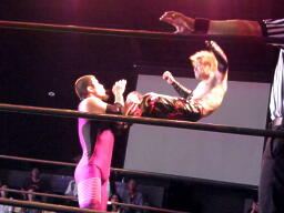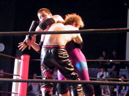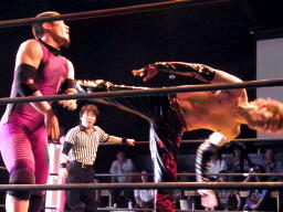 イサミトラースキック(左写真)、カウント2。10分経過。
