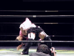 ブラックチェリーはくるくるリボン、チェリーブロックしてエビ固め(右写真)、カウント2。