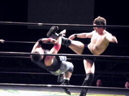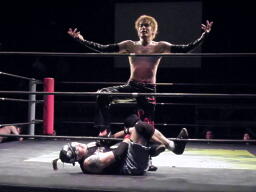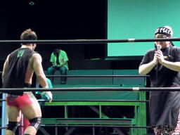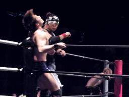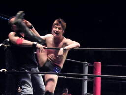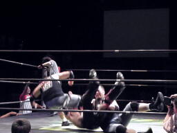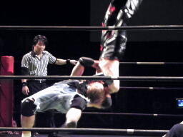 ƒ„ƒX‚ªƒuƒŒ[ƒ“ƒoƒXƒ^[Aƒ_ƒuƒ‹‚Ń[ƒv‚ÉU‚낤‚Æ‚·‚邪‰~‰Ø‚Ql‚܂Ƃ߂ătƒ‰ƒ“ƒPƒ“ƒVƒ…ƒ^ƒCƒi[i‰EŽÊ^jB