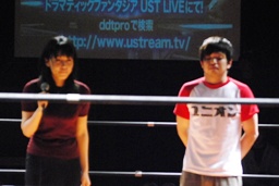 イサミはキム・ナンプンの持つDDT・EXTREME選手権に挑戦したい、と(右写真)。スーザン代表の答えは「交渉中」。