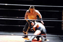 宮崎ロープに飛んでショルダーブロック(右写真)、大家受け止める。
