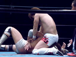田村ステップオーバーアームストレッチ(左写真)、高尾ギブアップ。