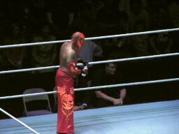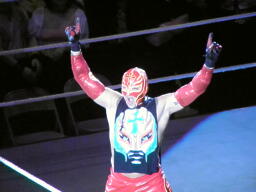 しかし人気ではミステリオも負けてない(左写真)。ミステリオがSMACKDOWN!であることを考えてもこれは日本向けの「夢のカード」だ。