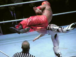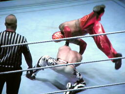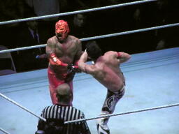 エヴァン突っ込む、ミステリオはカウンターでウラカン・ラナ(右写真)、