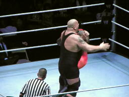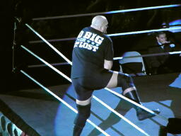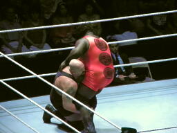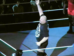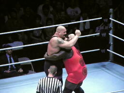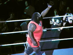マーク・ヘンリー入場(右写真)。ヘンリーの試合はあまり好きじゃないのだが、ビッグショーとなら面白くなるかな?