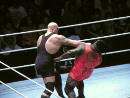 ビッグショーKOパンチ(右写真)、カウント3。