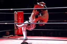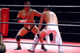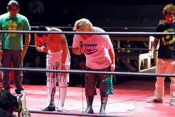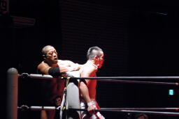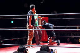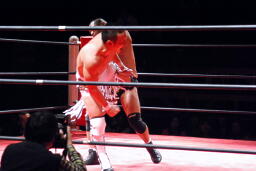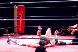 ウラノ「負けたね。東郷さん、僕達が9年前にみちのくのリングに初めて上がった時、あなたはもう雲の上の存在でした。10年経ってやっと僕達こうやってメインのリングで向かい合うことができました。このまま僕達何もできないまま、あなたがリングを去ってしまうのはつらいです。でも、僕もHIROKIもまだ諦めません。僕はあなたの横であなたのレスリングを盗んで残して行く。」(右写真)