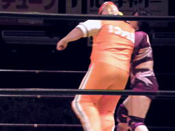 試合後さらに暴れるジャクソンを金村キンタローが襲い、「アイツと試合組め!」と叫ぶ。「チャレンジマッチ」とか言いながら金村のストーリー作りだったのか、という感じ。