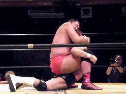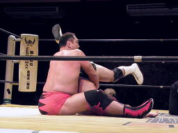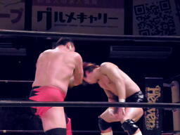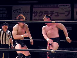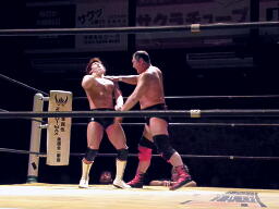 大谷張り手(左写真)、小幡エルボー連打してロープに飛ぶ、