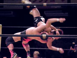 最後はスパイラル・ボム(左写真)、カウント3。
