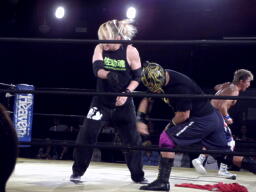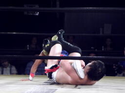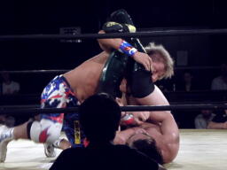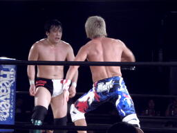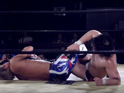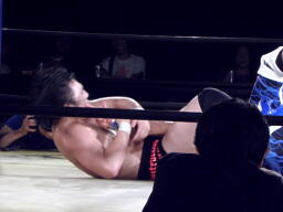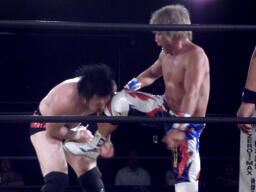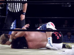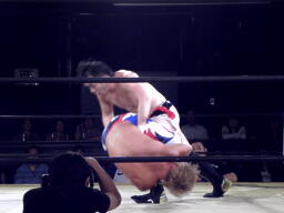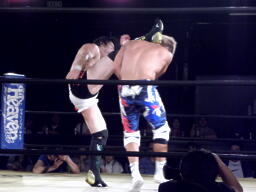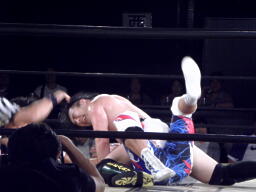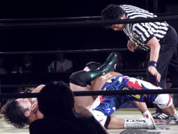 そしてダブルアームスープレックス(左写真)、カウント2。