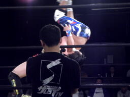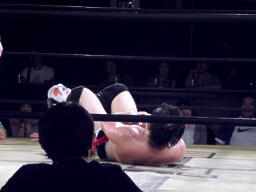 佐藤リリースしてバックドロップ(右写真)、カウント2。